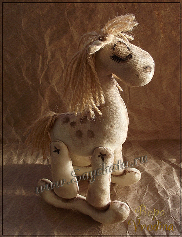 - В данном случае я тонировала уже пошитую лошадку, самым простейшим способом: