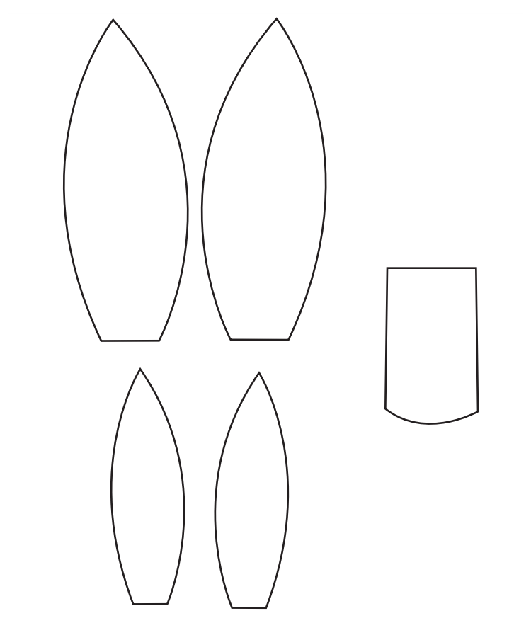 - Обведите контуры на белой и розовой цветной бумаге. Вырежьте две узкие полоски длиной 10 см из чёрной цветной бумаги.